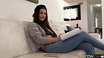 Beautiful teen Jade Symz take a huge dick in her tiny tight pussy, interview and behind the scenes